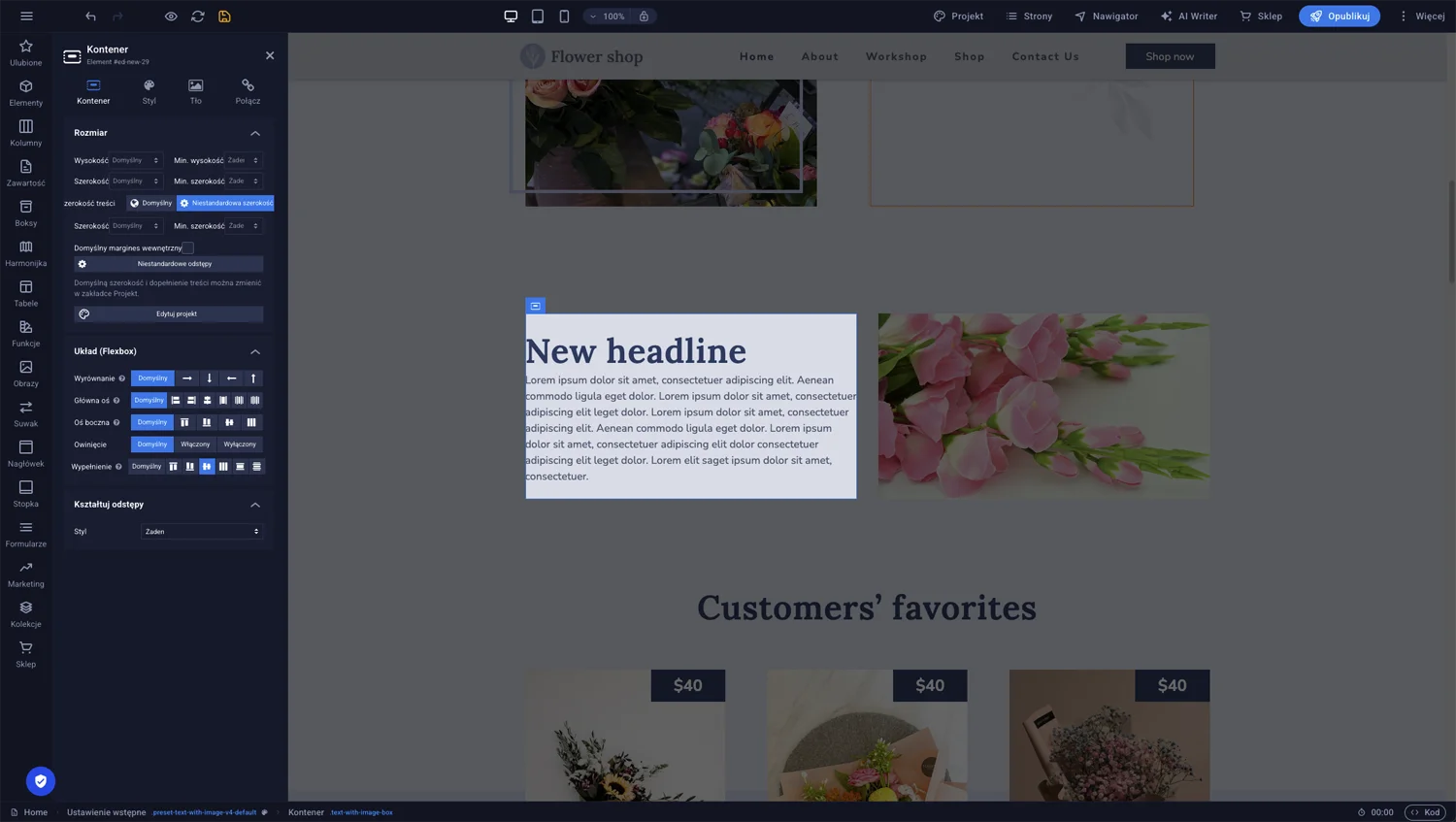 Organizacja treści to kluczowy element każdej strony internetowej. Edytor Sitejet Builder umożliwia łatwe i intuicyjne jej dodawanie. Podstawowa treść to najczęściej blok składający się z tekstu i obrazu. Sitejet Builder posiada kilka predefiniowanych sekcji tego typu, co sprawia, że dodawanie kolejnych elementów jest szybkie i proste.